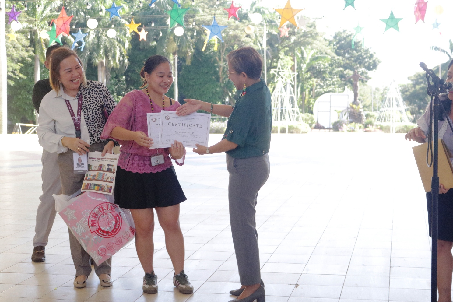 Other contest placers were called but were not present. The top book borrower among students in Calendar Year 2025 was Clint Delima of the BA English program; among faculty members, it was a tie between Atty. Marvin Doods de Castro and Assoc. Prof. Maria Stella Salazar, both of whom were not present. All winners can still claim their prizes at the University Library.