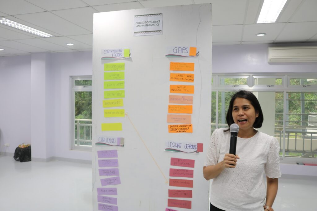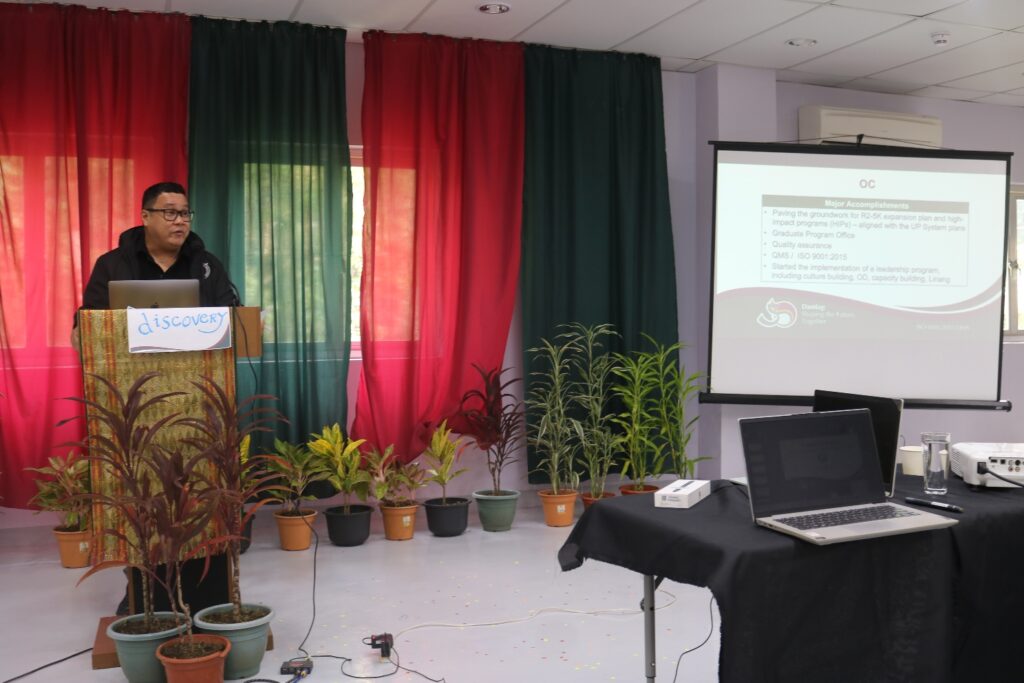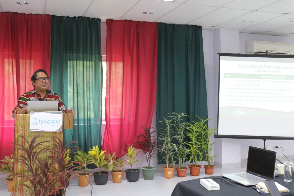 Chancellor Murao gave the keynote message to set the planning sessions. College of Humanities and Social Sciences Dean Jhoanna Lynn B. Cruz, College of Science and Mathematics Dean Cleto L. Nanola Jr., and School of Management Dean Aurelia Luzviminda V. Gomez presented college updates to provide context. Vice-Chancellor for Academic Affairs (VCAA) Ma. Stella Salazar and VC for Administration Leo Manuel Estaña, likewise, gave updates from their offices.
